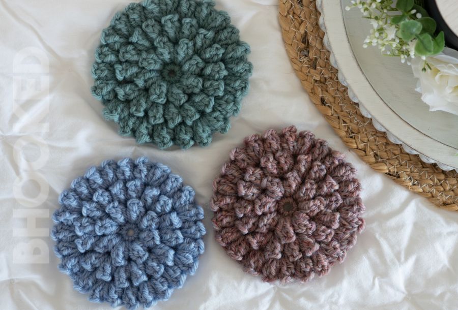 If you’re looking for a textured and versatile crochet flower to finish off your latest crochet or knitting project, the Popcorn Stitch Flower is a perfect pick. It adds just the right amount of dimension for a subtle pop of texture—and you can even sew a button in the center for extra personality!