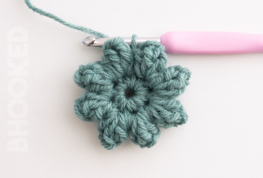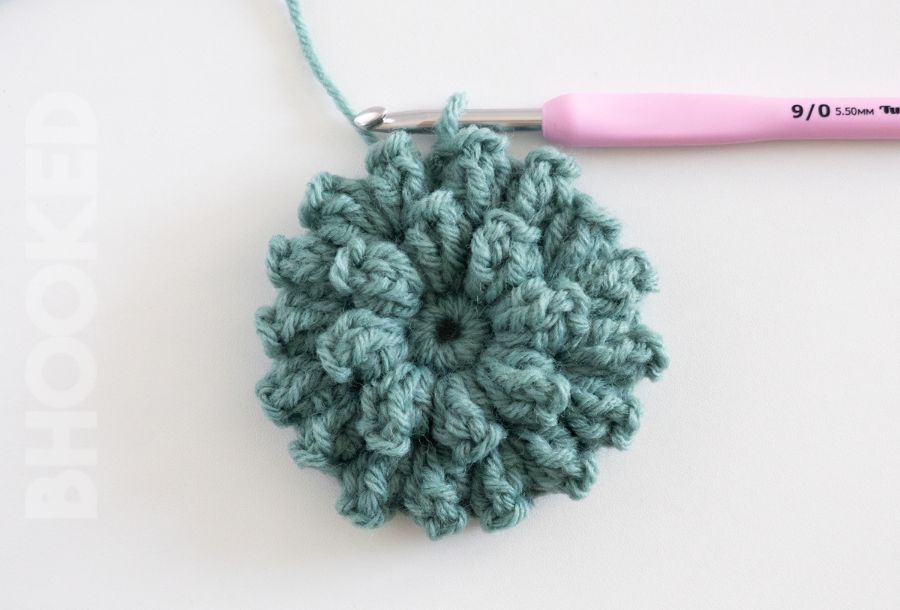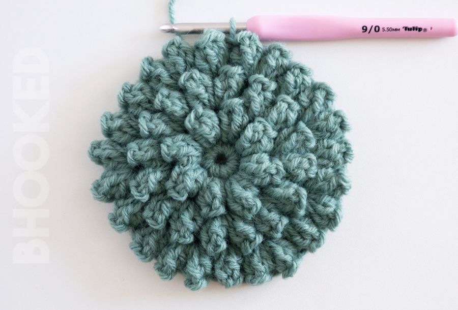 Note: If you want to add more rounds to your popcorn stitch flower, you can easily do so by following the general increasing formula for crocheting circles. Just consider one popcorn stitch as a single stitch, and follow the instructions you see in my crochet circles guide here!