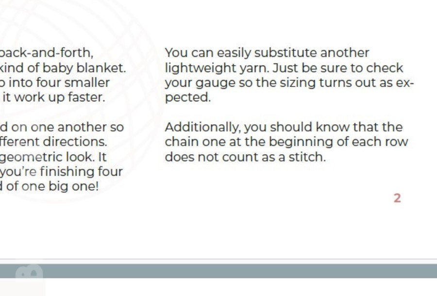 If you don’t find a blurb like this in the notes section of your pattern, you may find it within the pattern itself. It can look something like this: