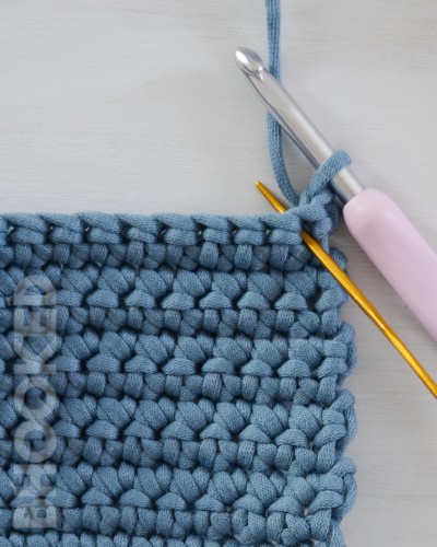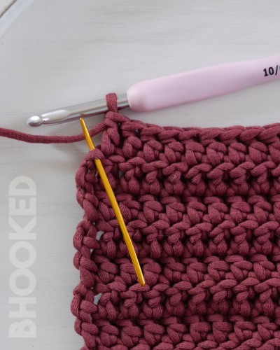 If the turning chain doesn’t count as a stitch, make the first stitch in the same spot as the turning chain. The last stitch of the row goes into the first real stitch of the row below (not a turning chain).