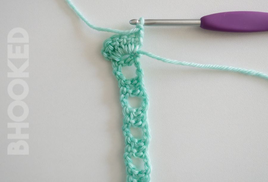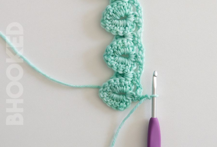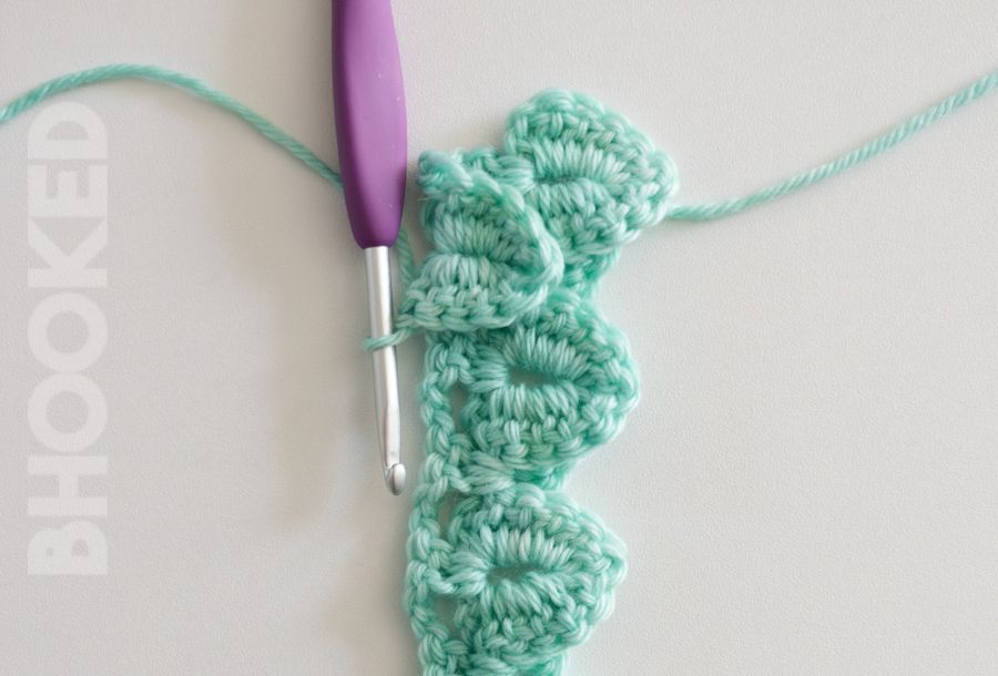 This means that you should chain in groups of 8 and add three chains only at the very end when planning your projects. Keep in mind that the scales will pull the chain inward so your swatch won’t be as wide than your initial chain.