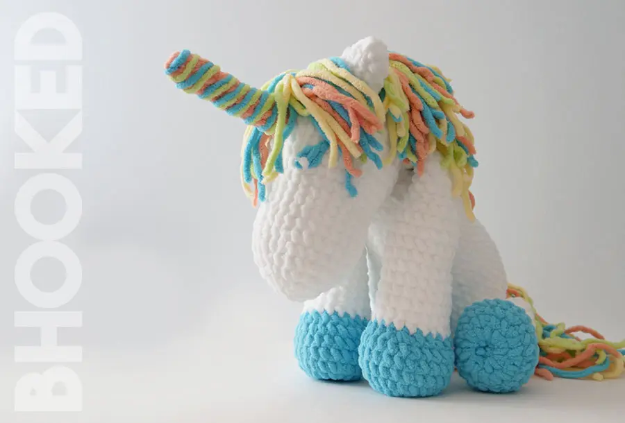 Additional Notes: Cuddles is made up of 9 elements: four legs, a body, a head, two ears, and a horn. Before each element is complete, add stuffing (before the opening is too small). Attach elements in this order: front legs to the body, head, back legs, ears, and horn. Once you have attached all of the elements, bring cuddles to life by embroidering the eyes and adding a mane and tail.
