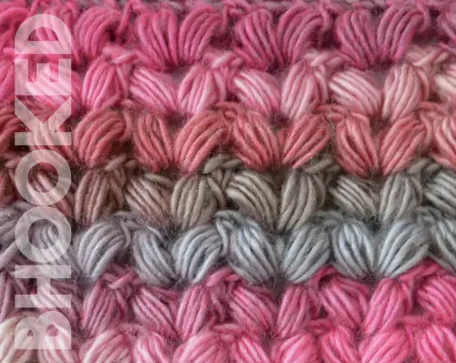 The V-Puff Stitch works well with all sorts of yarns from smooth to slightly textured, lightweight to bulky.