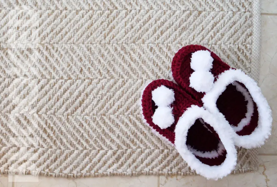 Before you begin, review this page entirely so you understand the full scope of the project. We prepared a list of recommended supplies and abbreviations you’ll need to get started as well as video tutorials and written instructions to walk you through our basic crochet house shoes from start to finish.
