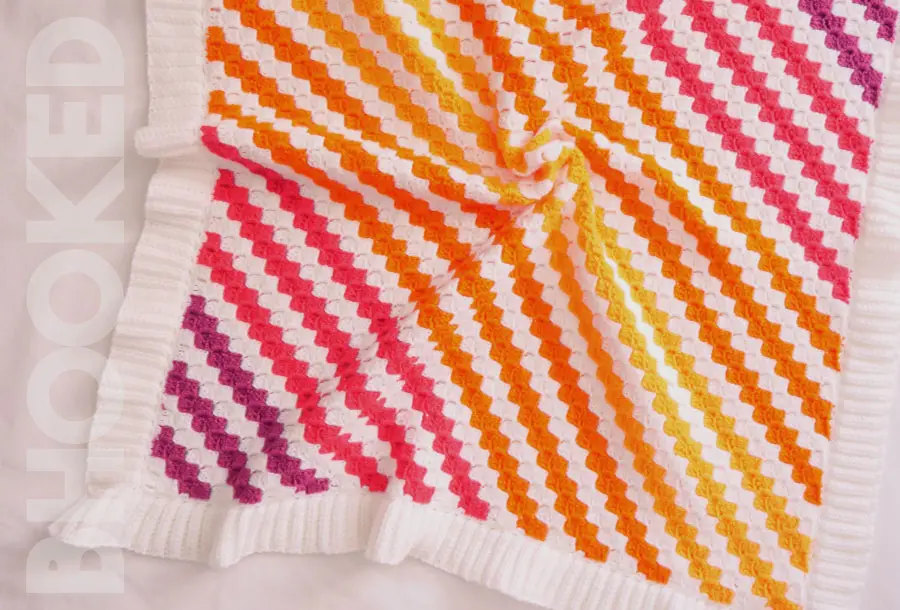 If you’re looking for a corner to corner baby blanket pattern with lots of color and a unique border, you’re in the right place. Our Baby Brights Corner to Corner Baby Blanket uses analogous colors to create a beautiful gradient.