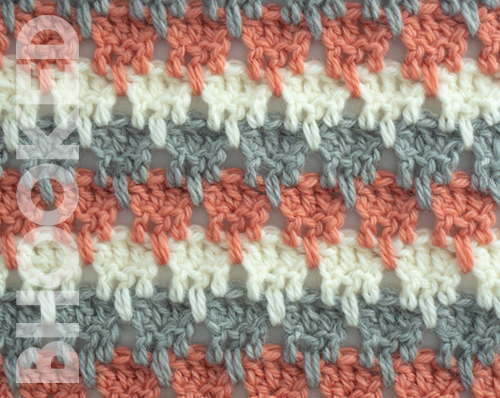 Additional Notes: Ch 3 at beginning of rows counts as a double crochet stitch. Ch 4 at beginning of rows counts as a double crochet and ch 1. To achieve the same color look, crochet rows 2 in one color before switching to the next.