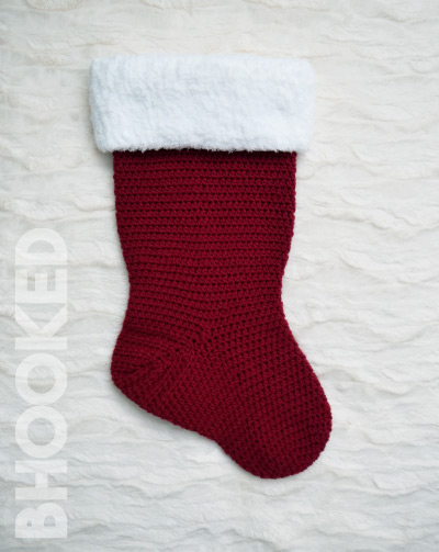 This classic crochet stocking is worked from the toe upward. The heel is crocheted in rows and assembled and the upper section is crocheted in a clean and simple stitch. The simple stitch pattern allows for you to be creative with colored stripes or appliqués.