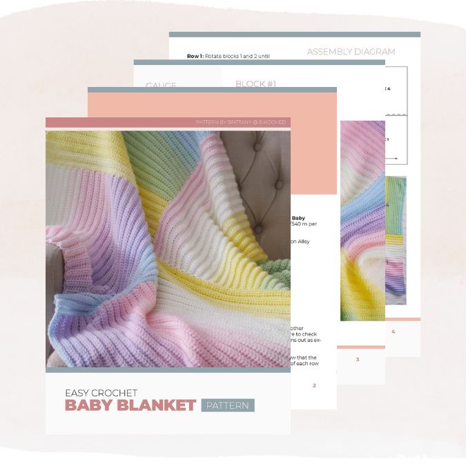 As you’ve already seen, our easy crochet blanket isn’t your typical back-and-forth, worked-in-long rows kind of baby blanket. Instead, we break it up into four smaller squares which makes it work up faster. These four blocks build on one another so the rows are facing different directions. This is what gives it a geometric look. It also makes it feel like you’re finishing four small projects, instead of one big one!