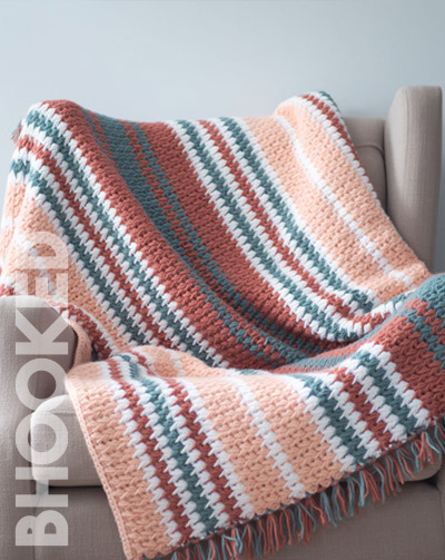 With this project you’ll get lots of practice with the feather stitch. You can make stripes in your blanket like we did, or leave it solid. It’s a beautiful stitch that works well with a variety of yarn colors, textures, and stripe patterns. Our tutorial will walk you through a nifty trick for changing colors without creating a bunch of ends to weave in too.
