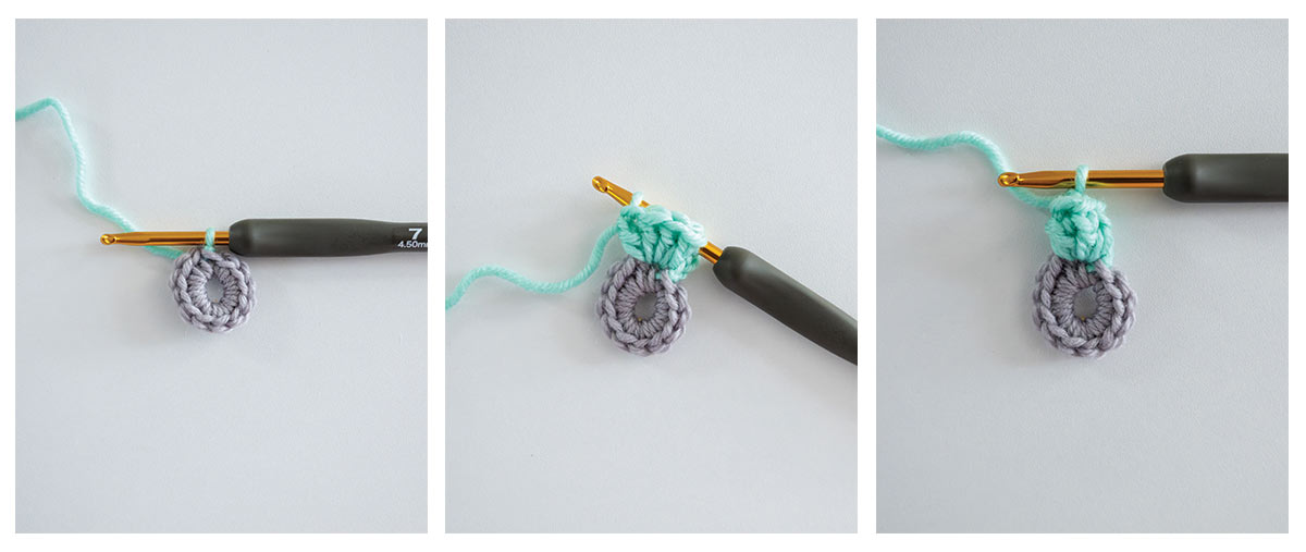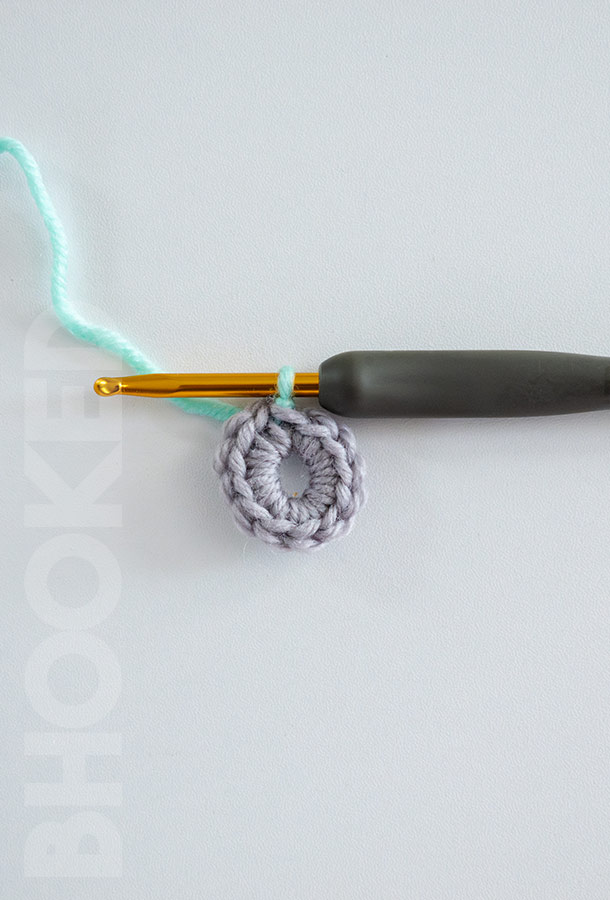 Ch 1 (does not count as a st) and make 12 sc in the center of the ring. Join with a slst to first sc.