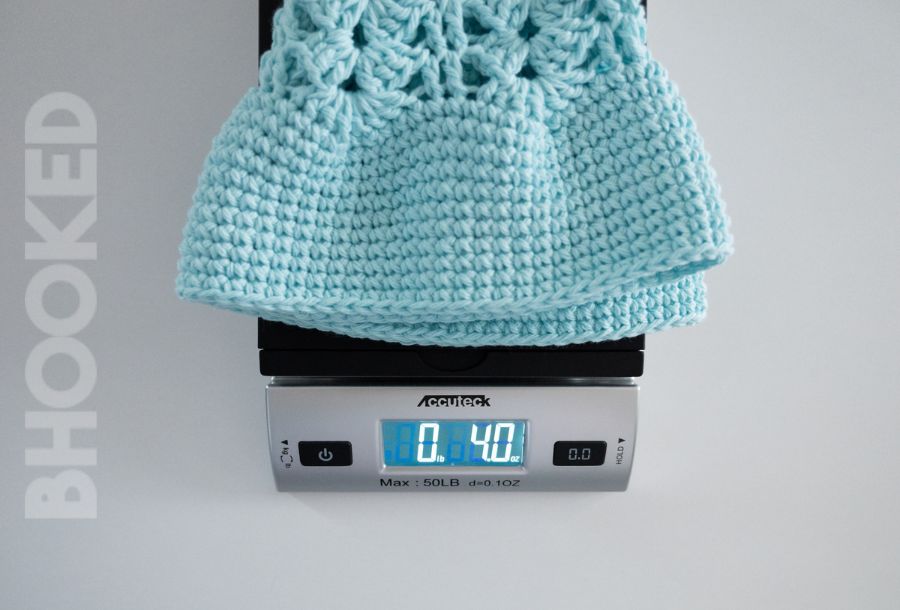 Once you’ve weighed your project, note down the weight of a single skein of yarn used in your project. You can find this info on the yarn label or weigh it using your scale. Just make sure you’re using the same units for the weight, so grams with grams or ounces with ounces.