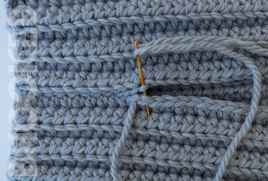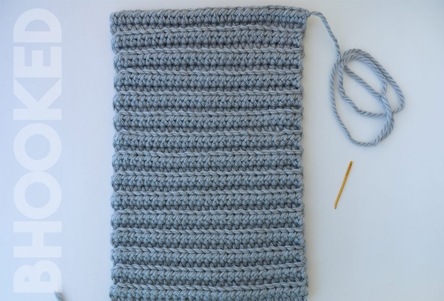 Fasten off leaving a tail that’s three times as long as the piece is wide, and continue to the assembly instructions.