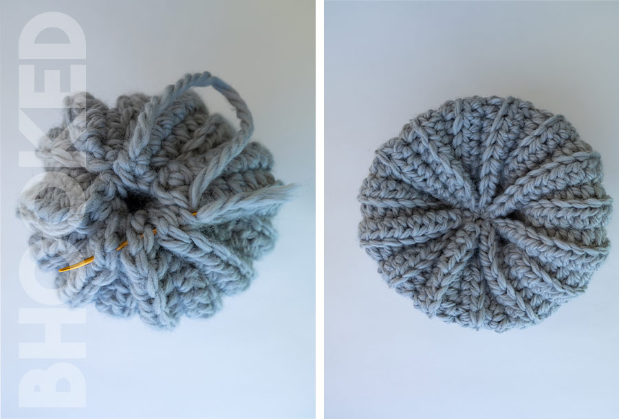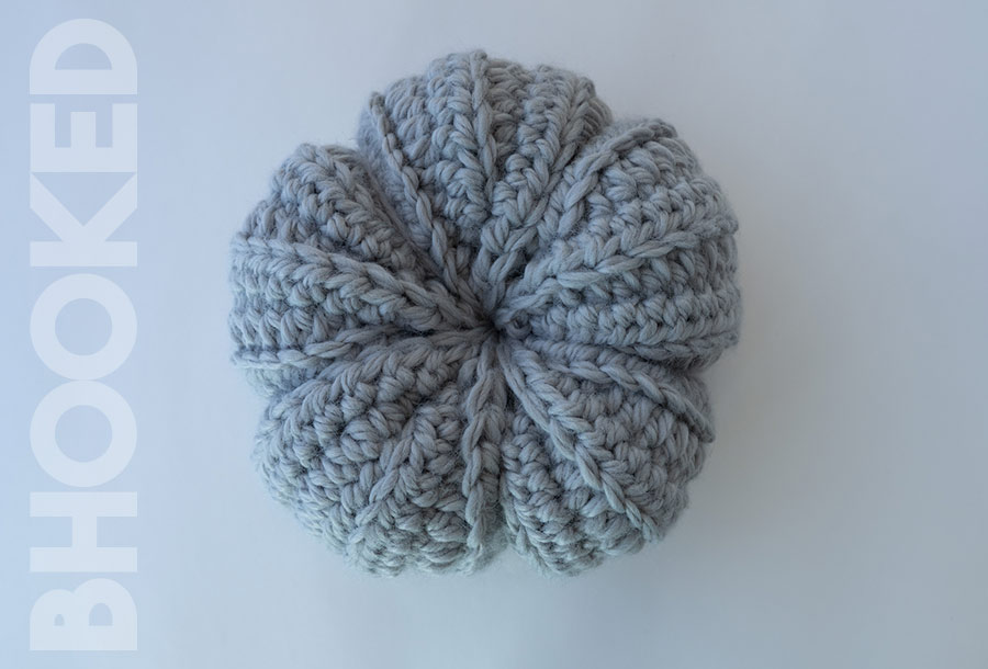 Each pumpkin is crocheted in a flat piece, then seamed and shaped. You can easily substitute for any super bulky weight yarn you like. Wool Ease Thick & Quick is another good one that comes to mind!