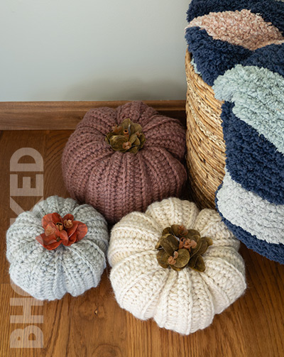 These crochet pumpkins are made with super bulky weight yarn, which means they’ll come together super quick. You’ll have all three in just a few days!