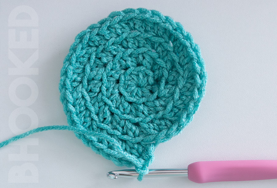 Don’t fasten off. Ch 1 (doesn’t count as stitch). Rotate the circle so you can crochet in the opposite