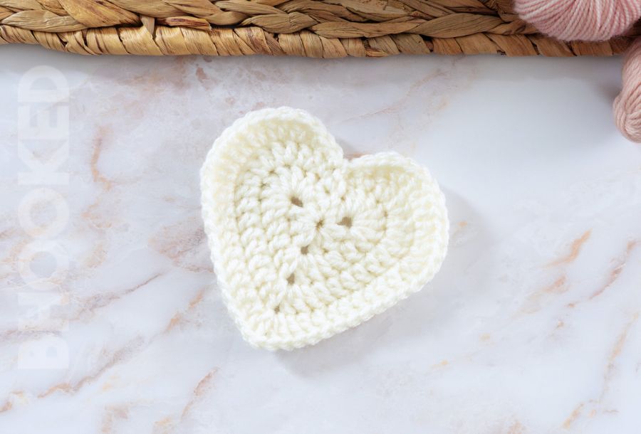 This heart will measure about 4″ wide. If you prefer a smaller heart, you might try my small crochet heart pattern instead!