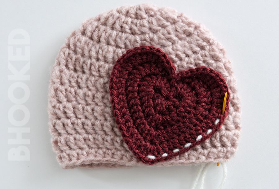 With a yarn needle, sew the heart on the hat.