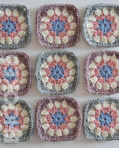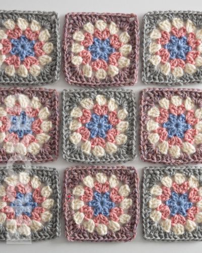 If you can’t find a combination that makes the exact size you need, use the one that’s closest but smaller. Then, wet block the granny squares to get them to the exact size you want.