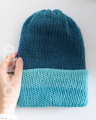 More rows = more slouch. Fewer rows = a beanie fit. You can experiment with 140, 150, or even 160 rounds to get the shape you like best. Fold the hat differently to style it snug or relaxed.