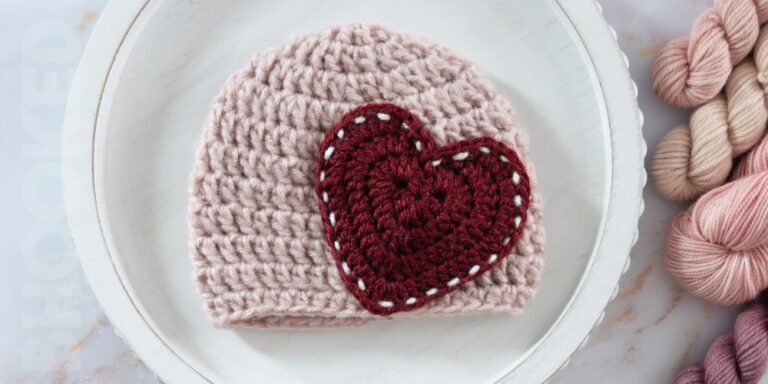 This crochet heart hat for kids combines something practical with a fun seasonal detail. It’s a great option if you want a Valentine’s Day project that will actually be worn and enjoyed beyond the holiday.