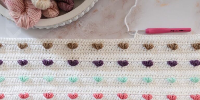 This crochet heart stitch is a fun way to add Valentine’s flair to just about any project. Use it in blankets, scarves, dishcloths, or accessories and let your imagination guide how you turn the stitch into something unique.
