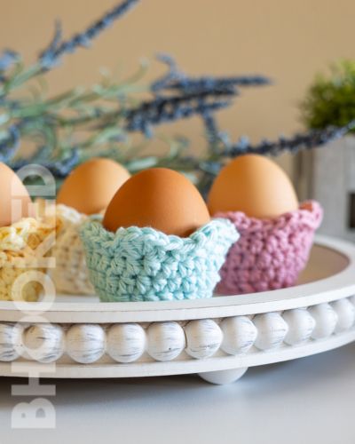 This pattern is a perfect scrap buster. Because crochet egg covers are so small, you only need a small amount of yarn to finish one — which makes this a great opportunity to dig into that stash and use up what you already have on hand.